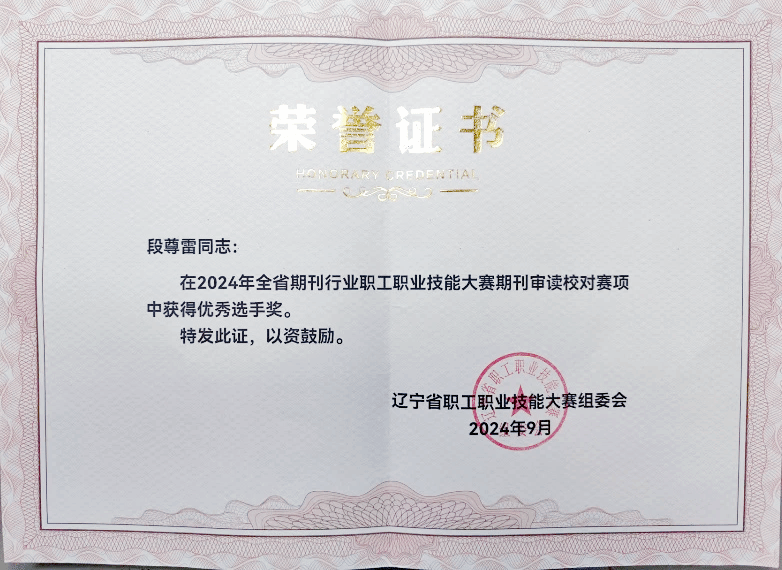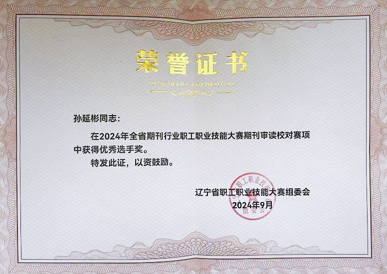 近日,2024年辽宁省期刊行业职工职业技能大赛获奖名单正式公布。我校学术期刊中心编辑孙延彬、段尊雷在“期刊审读校对”赛项中表现优异,荣获优秀选手奖,其中孙延彬取得全省第5名的出色成绩。